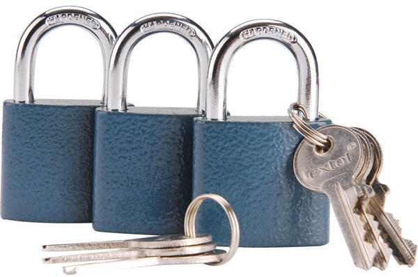 Extol Craft biztonsági vas lakat klt. , 38mm, 3 db lakat+6 db kulcs, univerzális kulcsok: egy kulcs jó mindhárom lakathoz (93101)