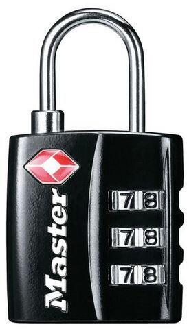 A TSA által jóváhagyott poggyászkombinációs lakat. Zárszélesség 30 mm. A fém zártest sérülésálló. 3 mm átmérőjű acélbilincs vágásálló. Állítható 3 számjegyű zárkombináció. Master Lock biztonsági osztály 4.